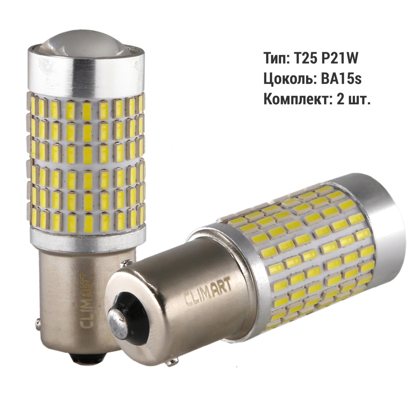 В комплекте 2 светодиодные лампы CLIMART T25 144LED 12V.