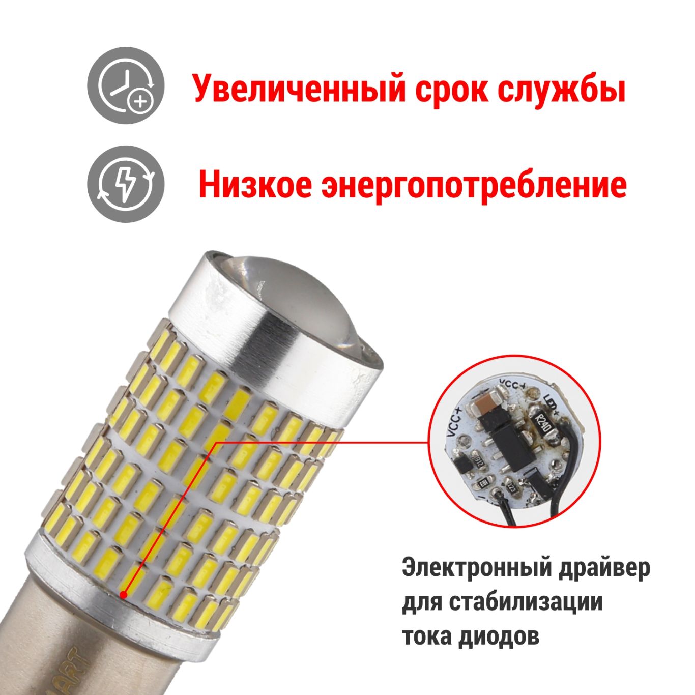 Светодиодные лампы CLIMART T25 отличаются низким электропотреблением, что снижает нагрузку на электрическую сеть автомобиля.