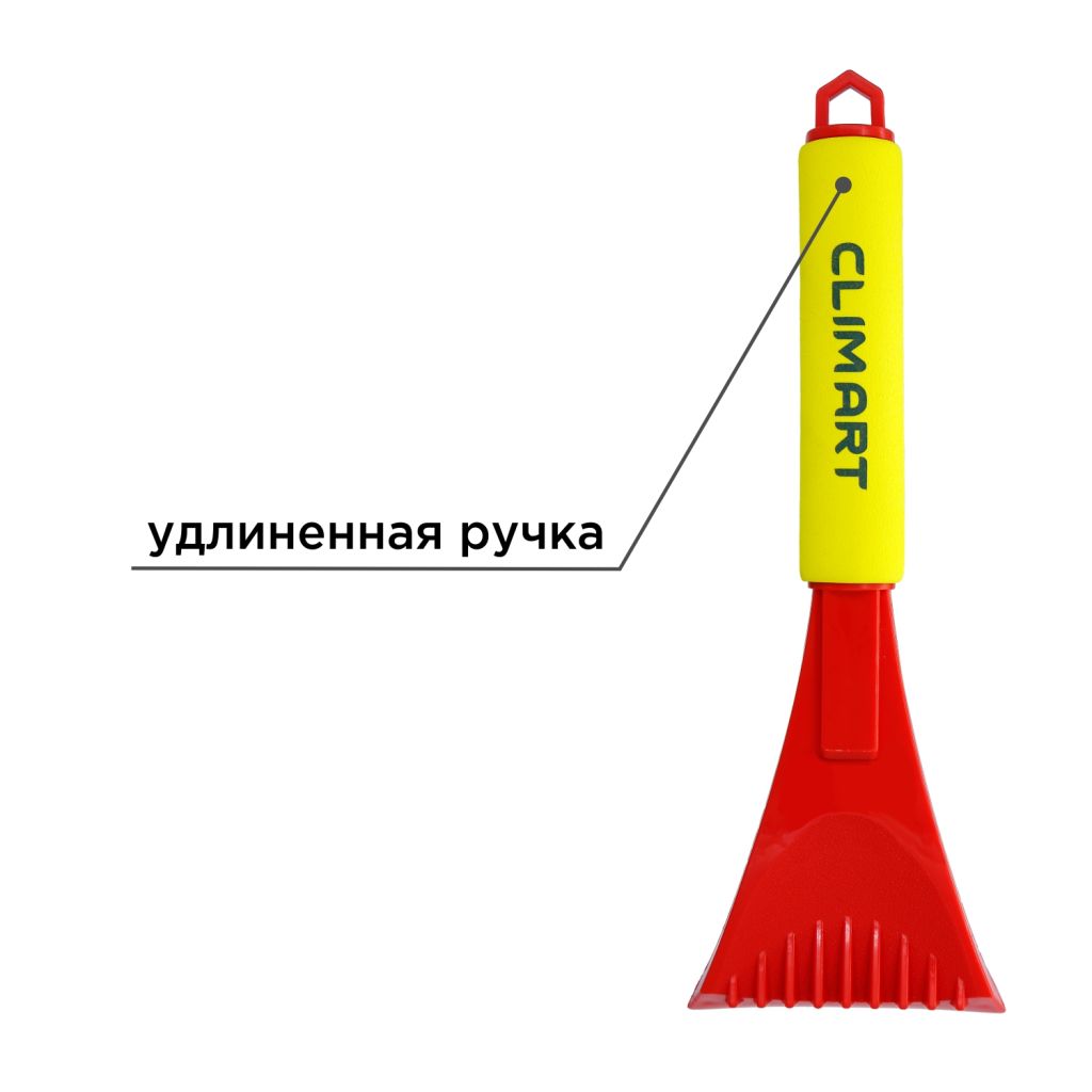 Компактный скребок для льда CLIMART – удобный аксессуар для эффективного удаления наледи и инея с поверхности стекол и зеркал заднего вида автомобиля.